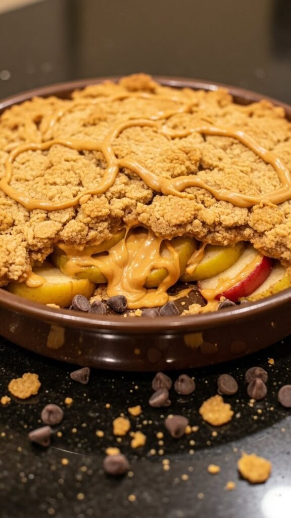 - Preheat oven to 350°F (175°C). Spread apple slices in a baking dish and dollop peanut butter over them.