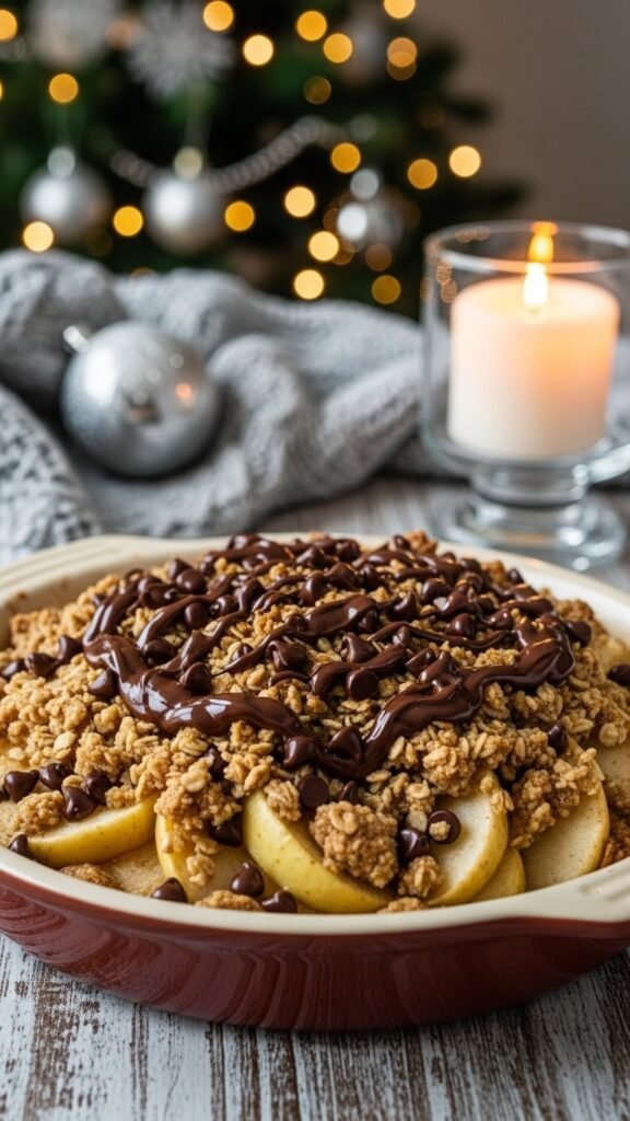 - Preheat oven to 350°F (175°C). Toss sliced apples with half the chocolate chips and place in a baking dish.