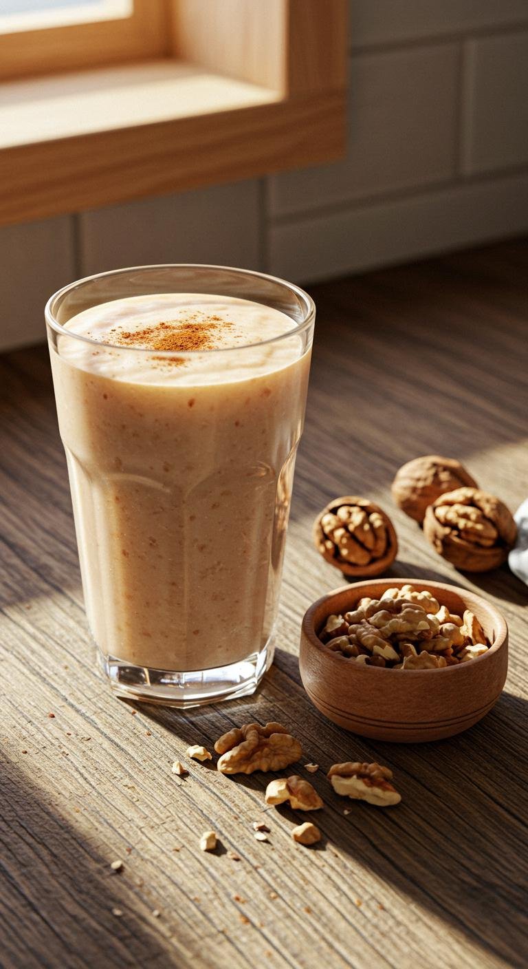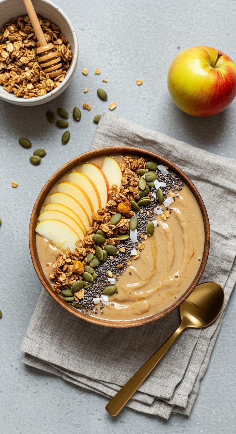 - Smoothie bowl style: Pour thicker smoothie in a bowl, top with granola, sliced apples, pumpkin seeds, and a drizzle of honey.