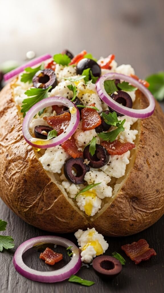 Mediterranean Bacon Baked Potatoes