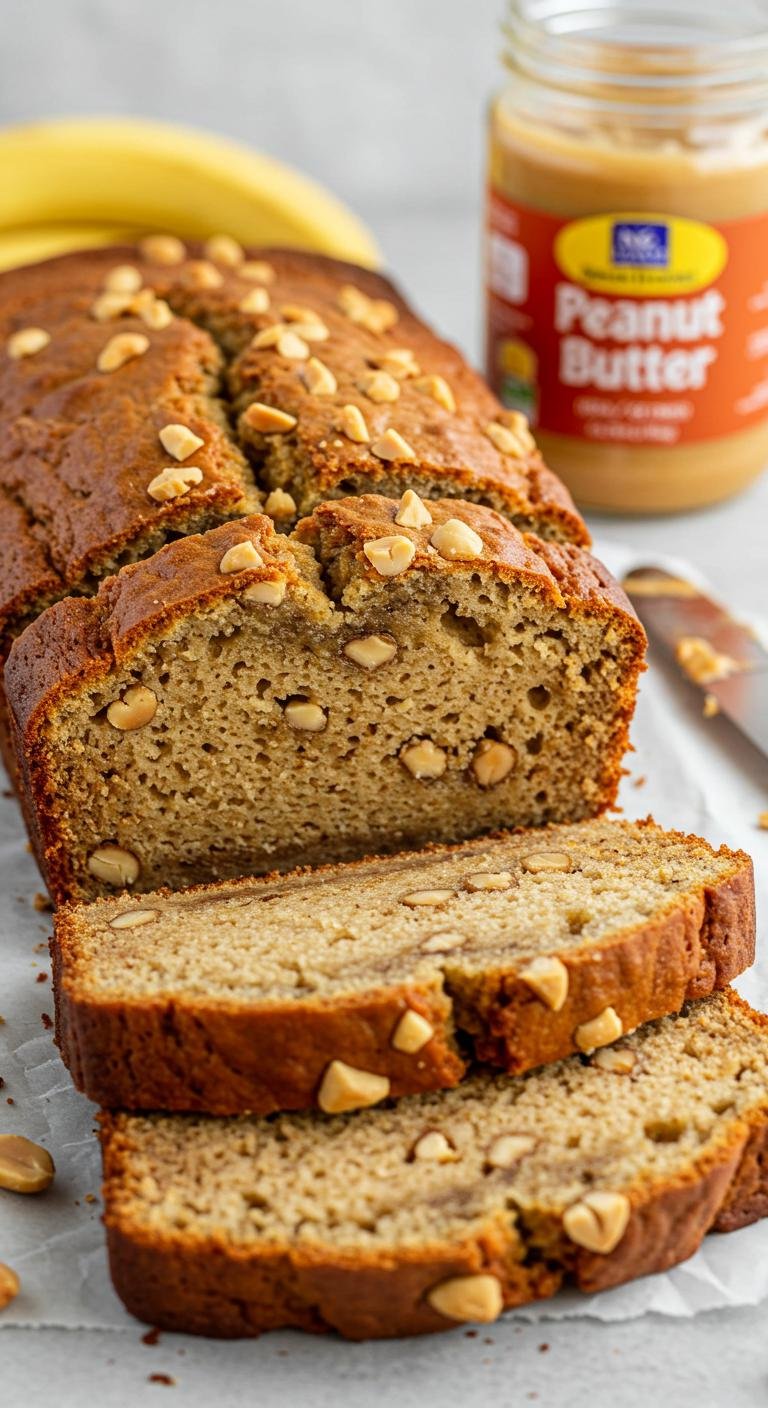 - Combine bananas, melted butter, peanut butter, and sugar. Stir in egg and vanilla, followed by baking soda and flour.