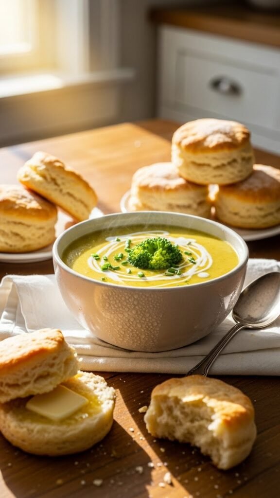 Biscuits and Broccoli Cheese Soup