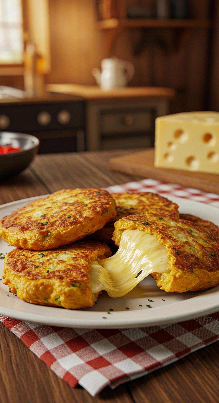 - Fry spoonfuls in a hot skillet until browned and cheese is melted.