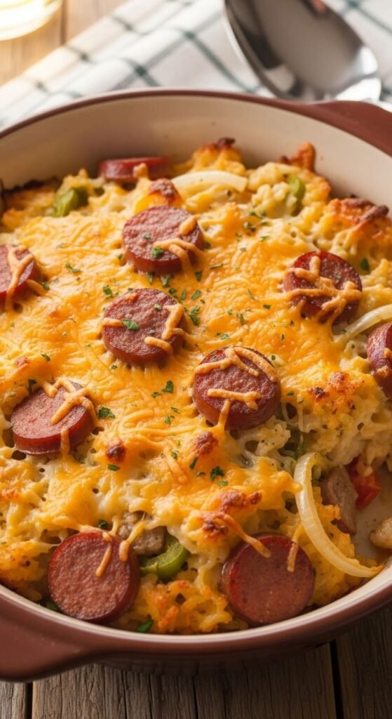 10. Cheesy Sausage and Rice Casserole