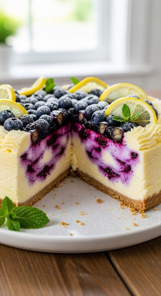 - Beat cream cheese and sugar until smooth. Add eggs, lemon juice, and zest. Fold in blueberries before baking for 50-60 minutes.