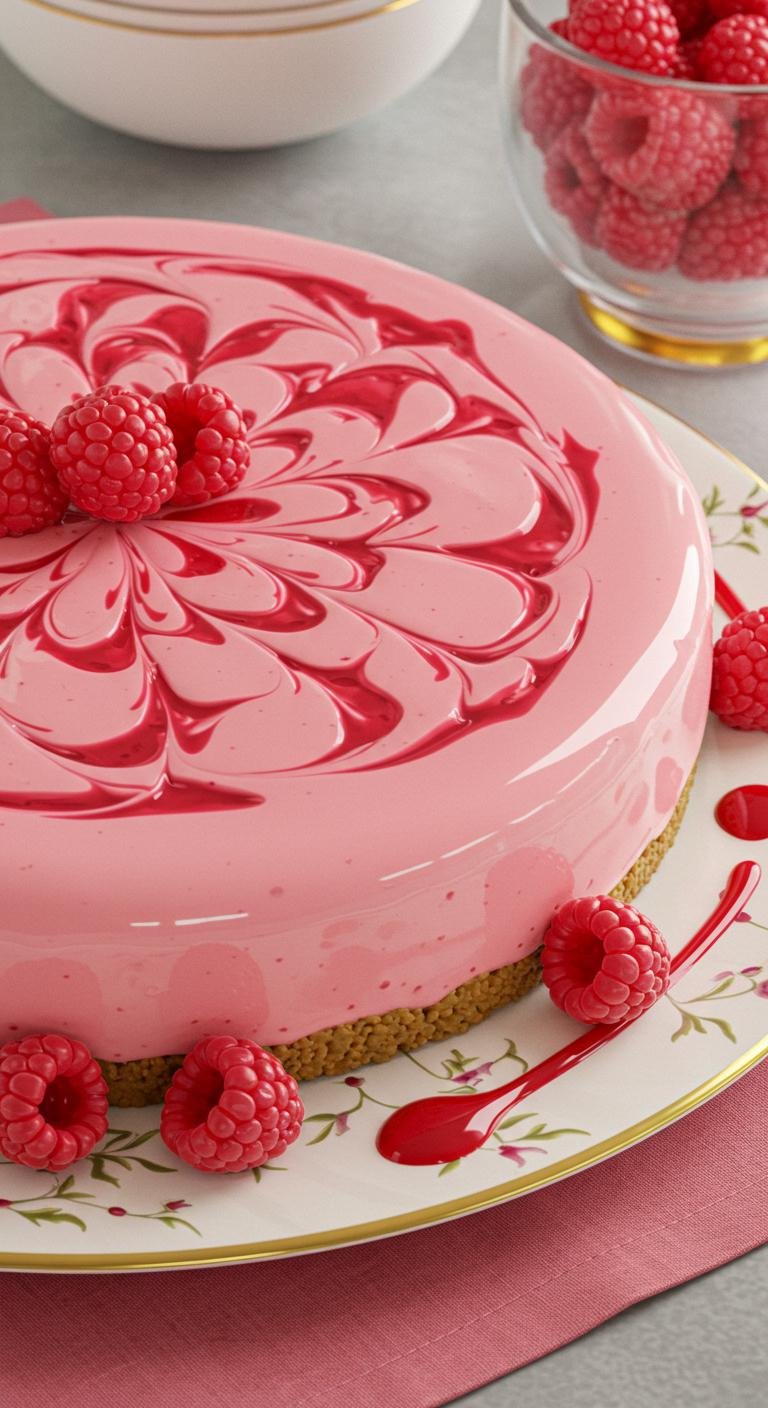 - Beat cream cheese and white chocolate until smooth. Mix in eggs and vanilla. Swirl in raspberry puree before baking for 50-60 minutes.