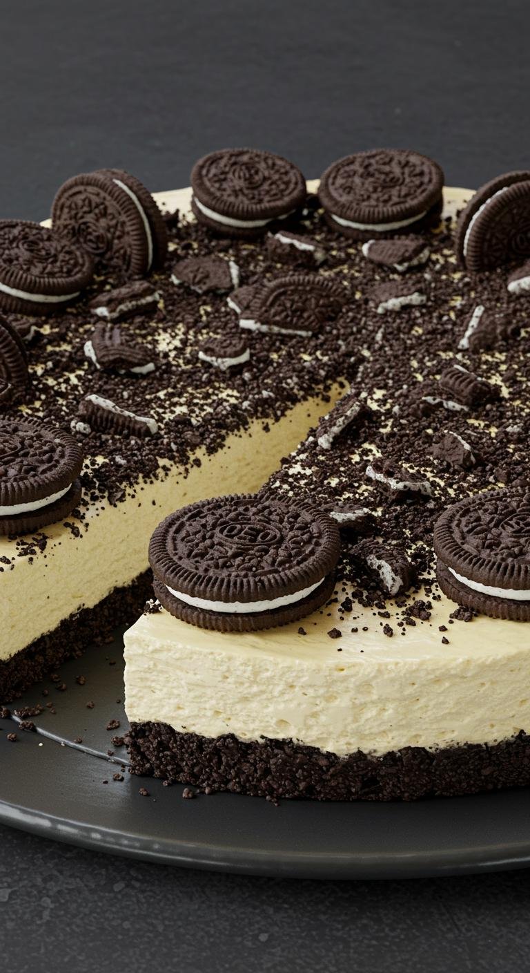 - Beat cream cheese and sugar until smooth, then add eggs and vanilla. Stir in crushed Oreos and bake for 50-60 minutes.