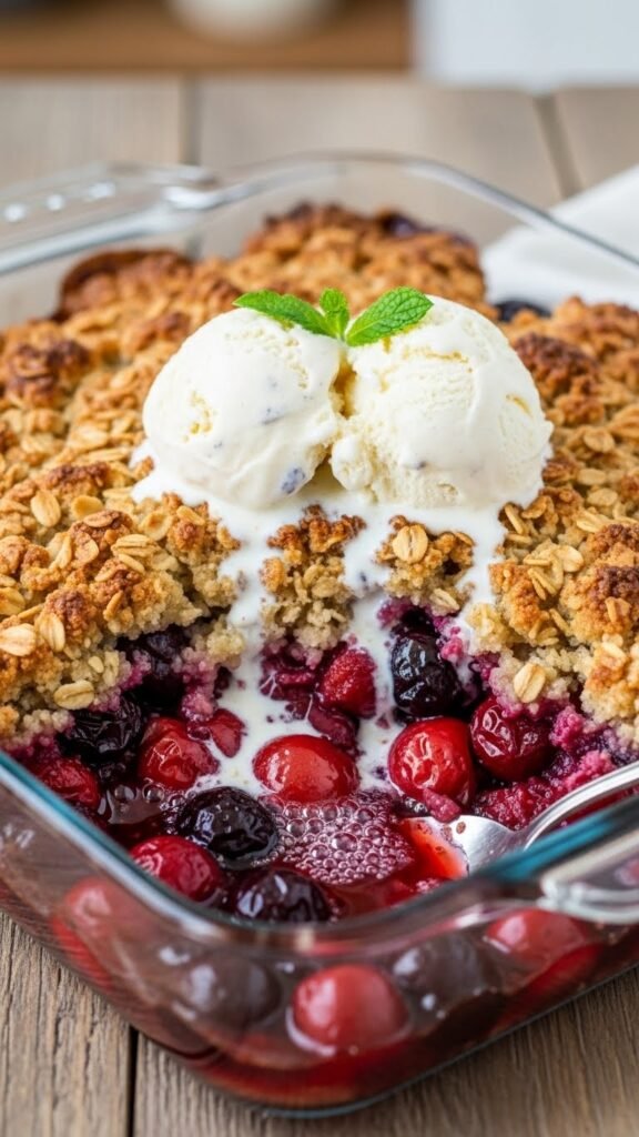 - Top the cherry mixture with the oat mix and bake at 375°F (190°C) for 25-30 minutes.