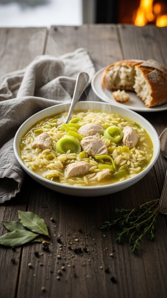 Chicken and Leek Soup with Orzo