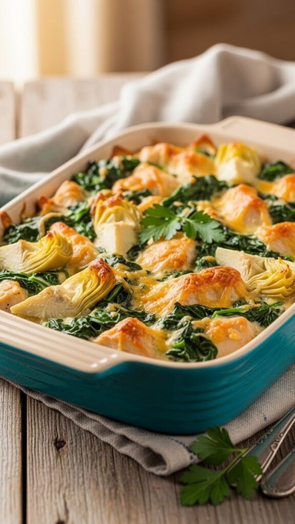 Creamy Chicken, Spinach & Artichoke Casserole