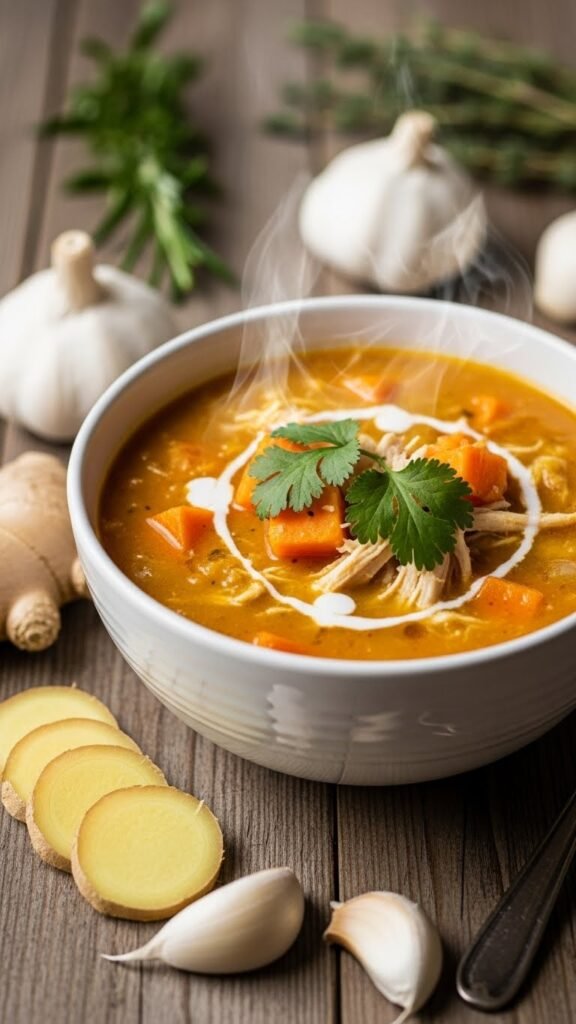 5. Ginger Garlic Chicken and Sweet Potato Soup