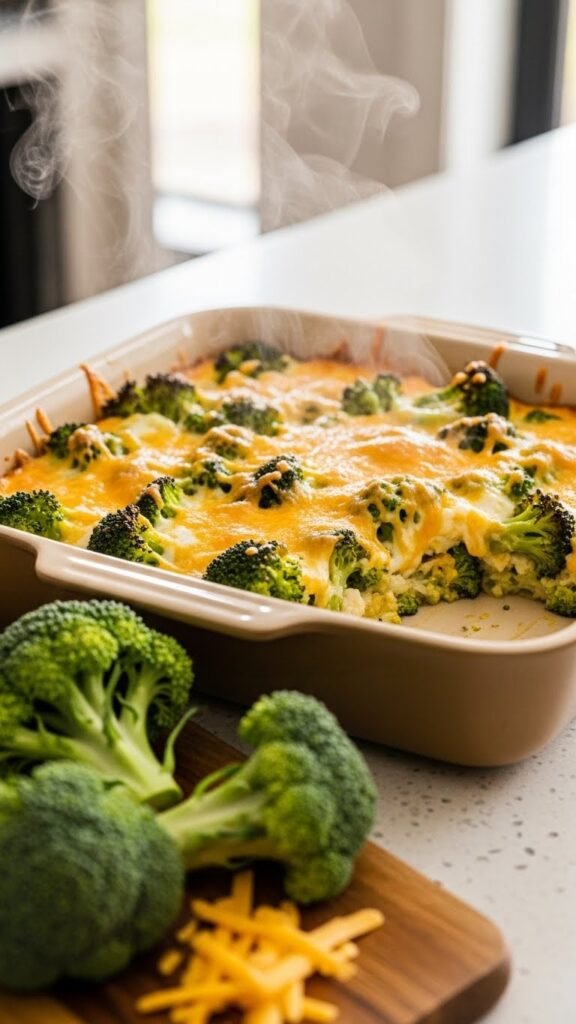 - Preheat your oven to 375°F (190°C) and steam the broccoli until tender.