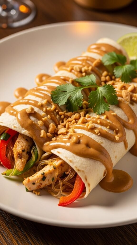 - Preheat oven to 375°F (190°C). Mix chicken with peanut sauce.