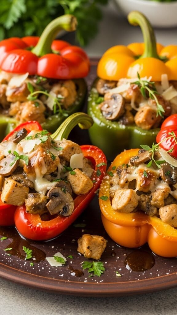 - Stuff peppers with the mixture and top with cheese; bake until bubbly.