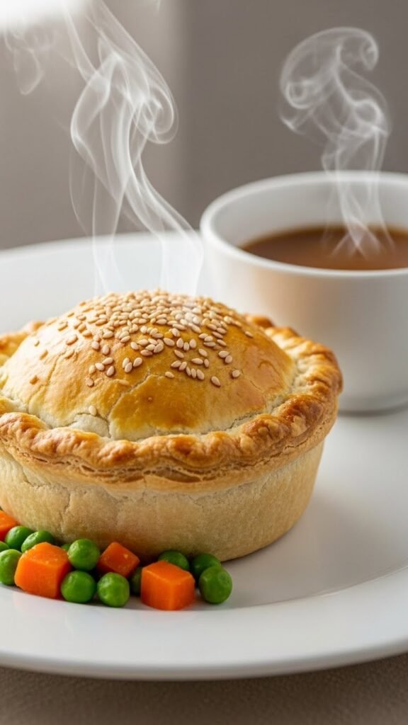 - Fill a baking dish with the mix, cover with puff pastry, and bake for 25-30 minutes.