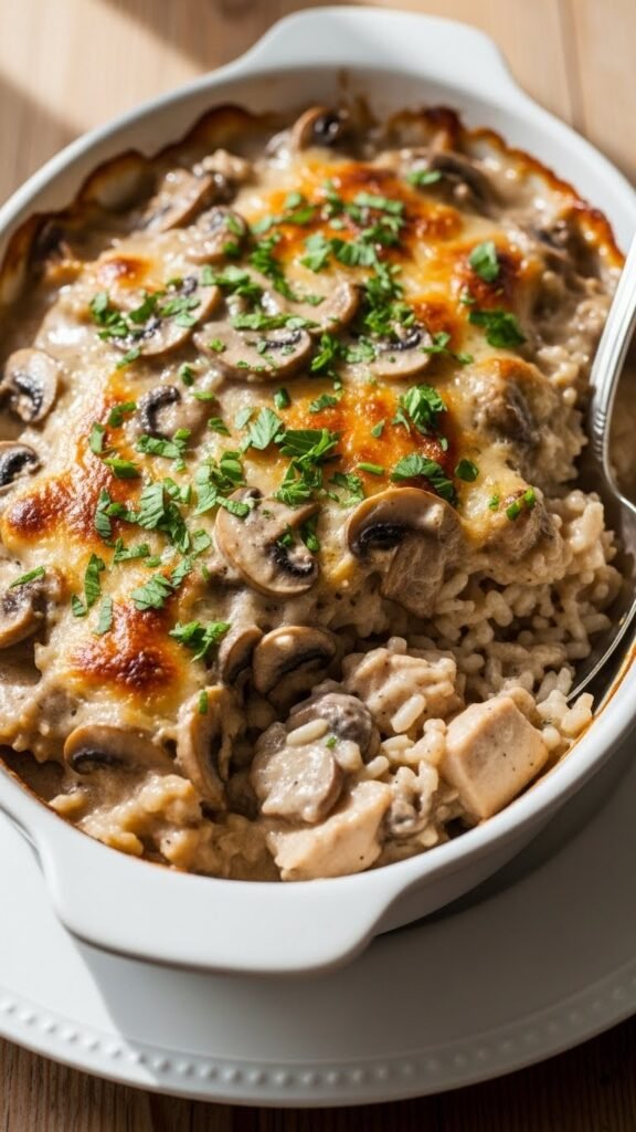 3. Creamy Mushroom Chicken Rice Casserole