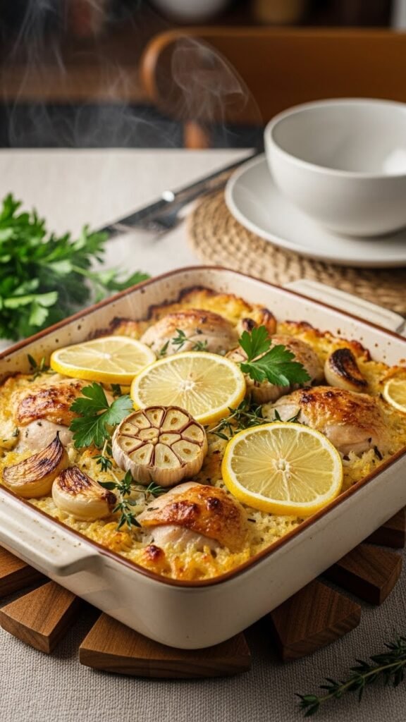 6. Lemon Garlic Chicken Rice Casserole