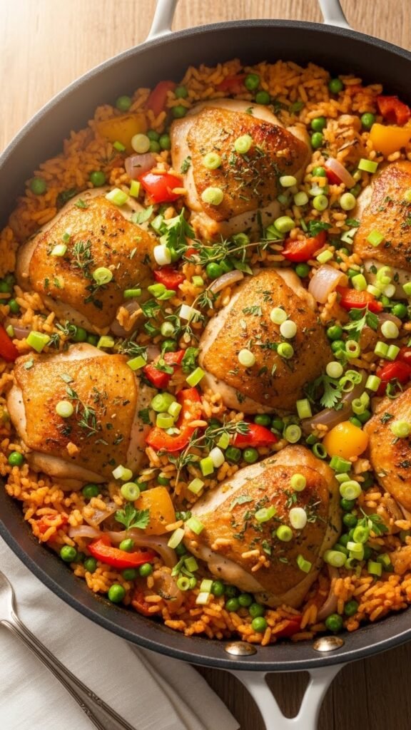- Cover and simmer for 20-25 minutes until rice is cooked and chicken is tender.