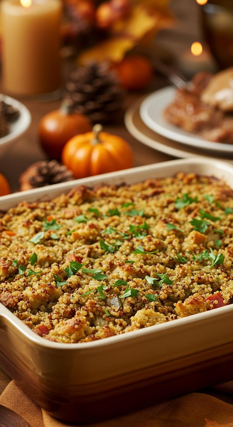 Quinoa isn’t just trendy; it’s a nutritional powerhouse with a light, fluffy texture and a subtle nutty flavor that pairs beautifully with classic stuffing ingredients. Unlike traditional bread-based stuffing, quinoa is naturally gluten-free and packed with protein, making it a winner for anyone looking to make their holiday meals a bit healthier or allergy-friendly.