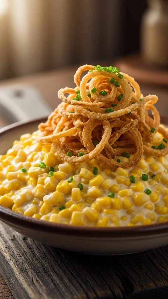Creamed Corn with Cream Cheese and Crispy Onions