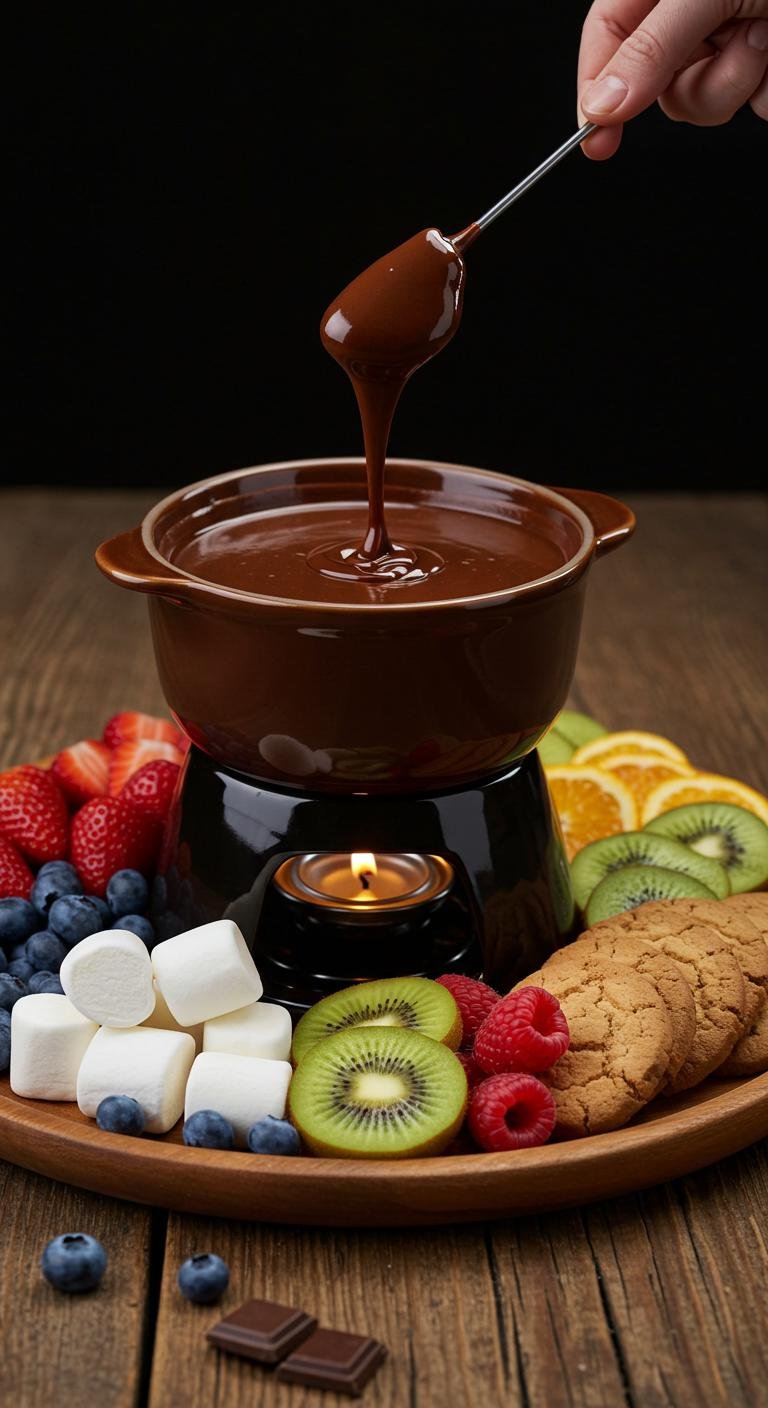 - Assorted dippers (strawberries, marshmallows, cookies)