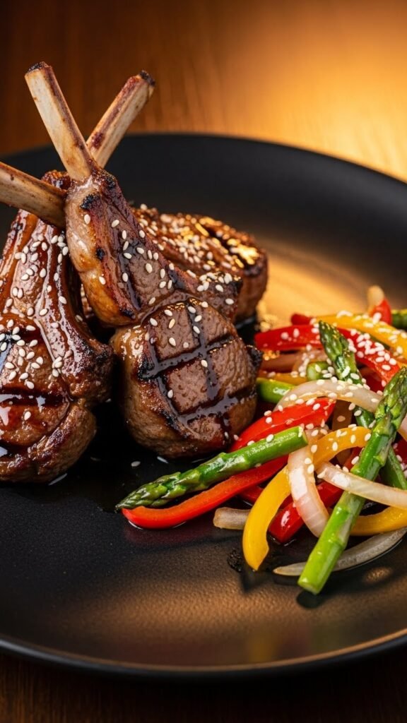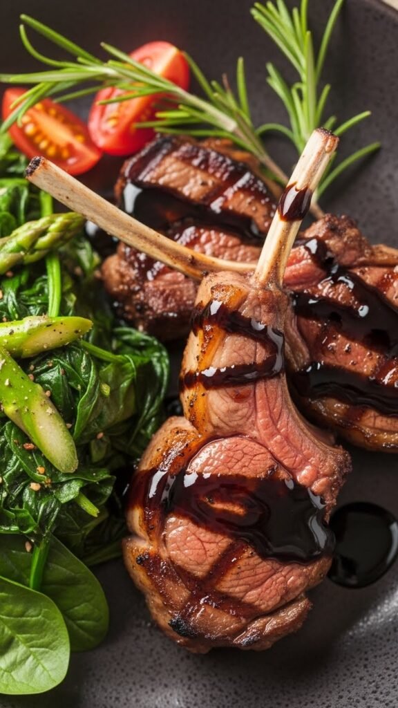 - Sear the lamb chops for 4-5 minutes per side, brushing with the balsamic glaze.