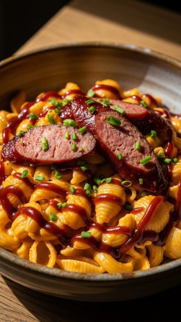 10. Mac and Cheese with BBQ Sausage