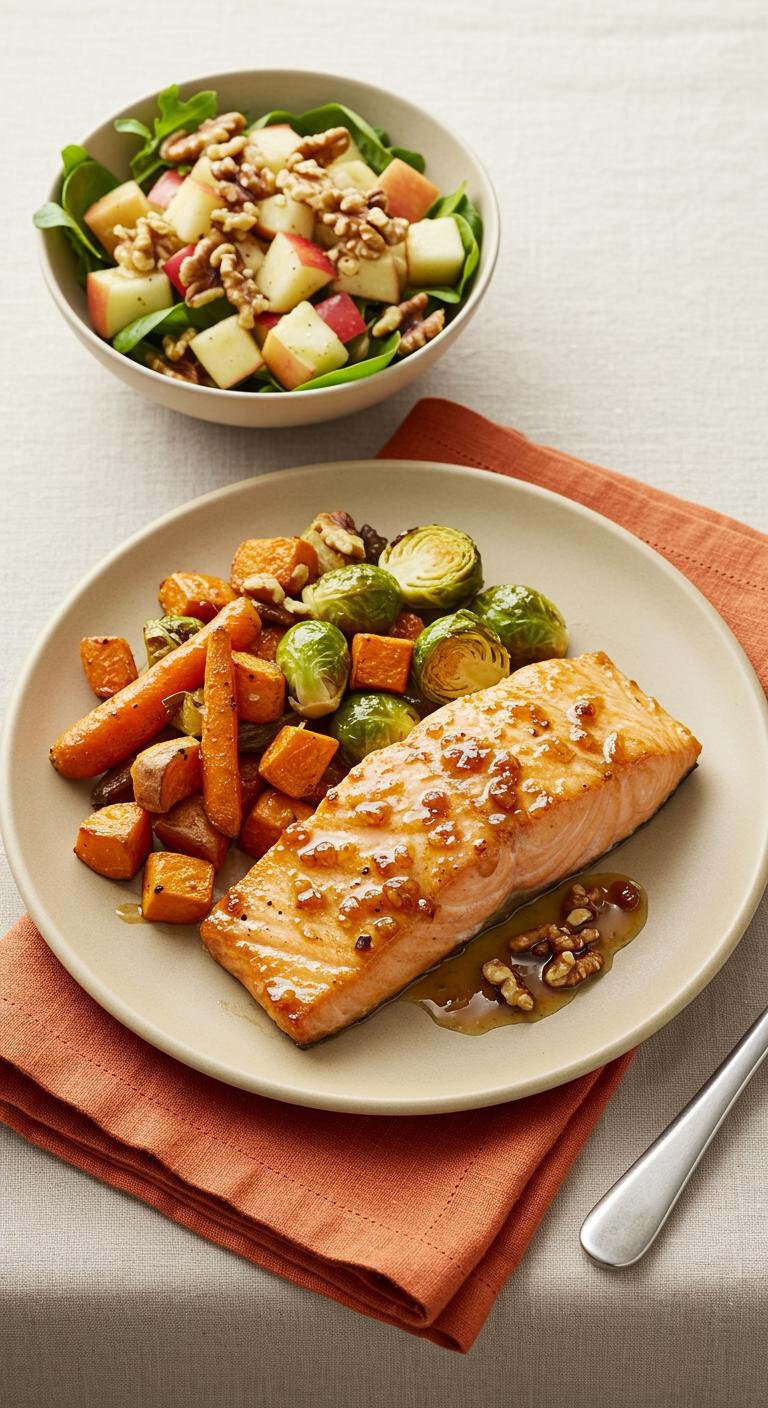 Pair your maple glazed salmon with sides that echo its warm, seasonal vibes: