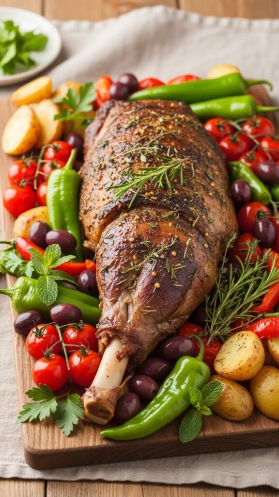 - Sear the lamb and season with herbs; add vegetables and chickpeas.