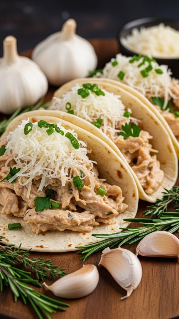 - Fill tortillas with chicken and sprinkle with parmesan and parsley.