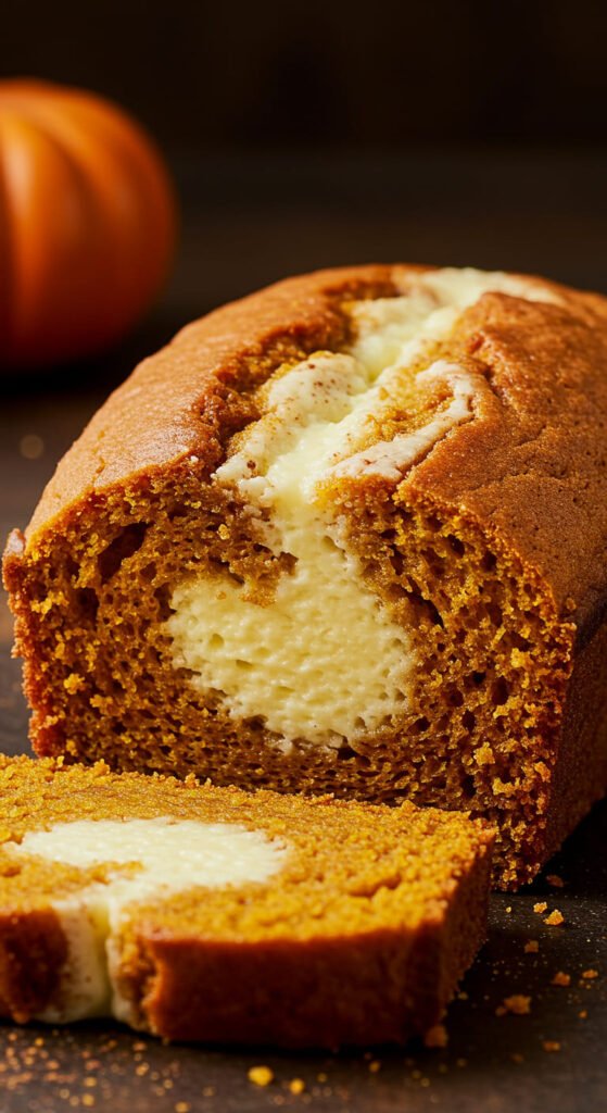 Spiced Pumpkin Bread with Cream Cheese Swirl