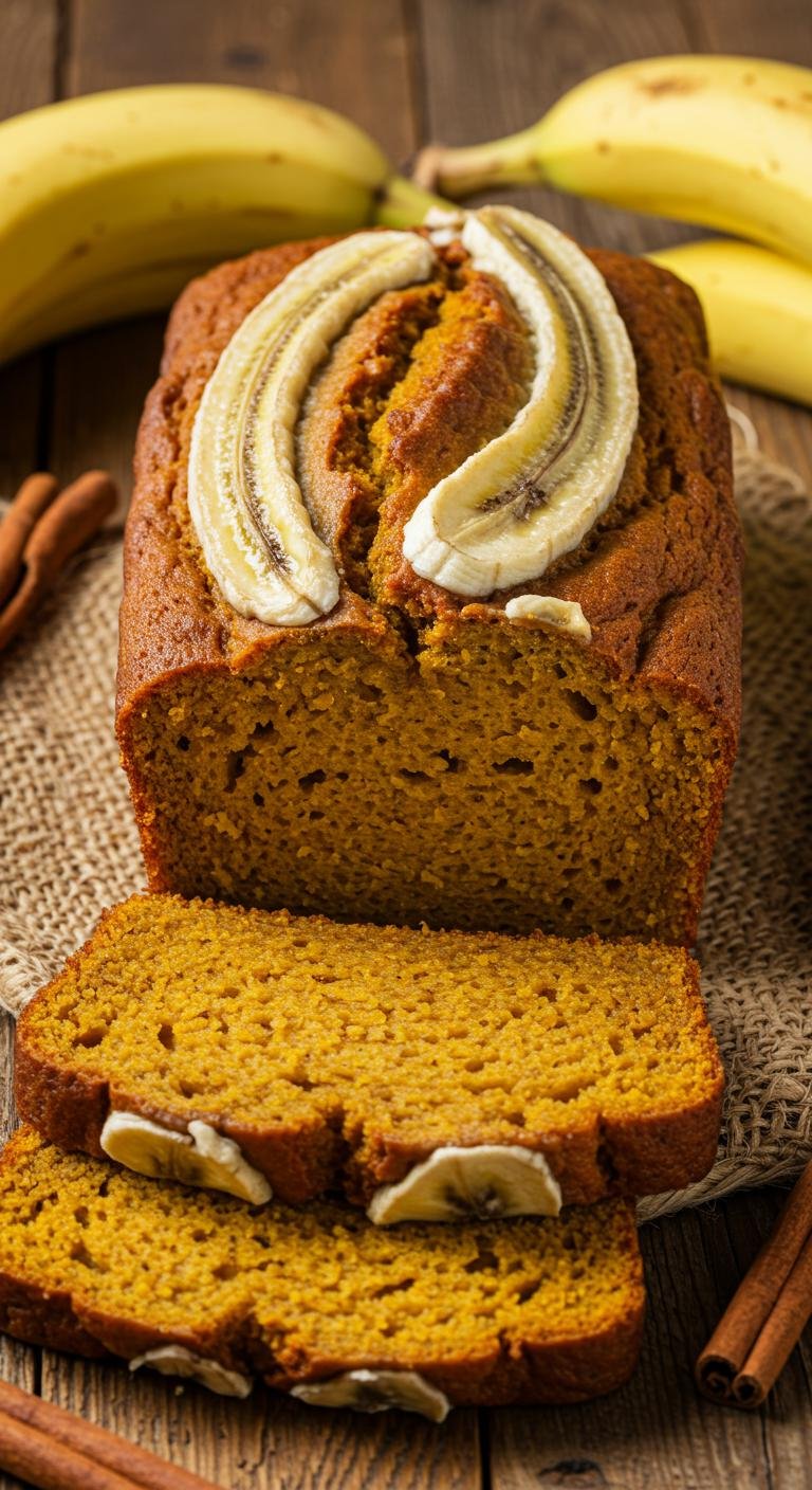 - Preheat oven to 350°F (175°C). Mix pumpkin, bananas, sugars, oil, and eggs.
