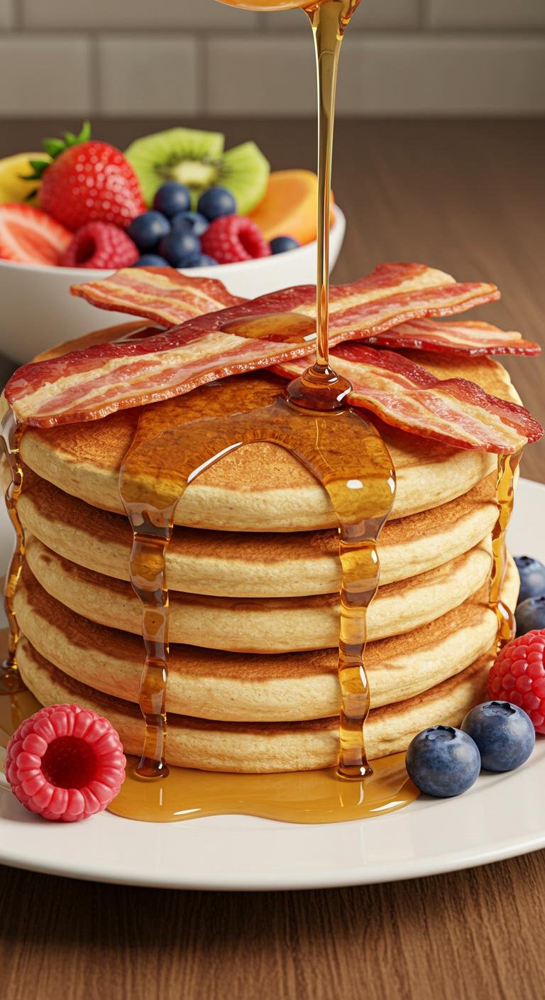 8. Ricotta Pancakes with Maple Syrup and Bacon