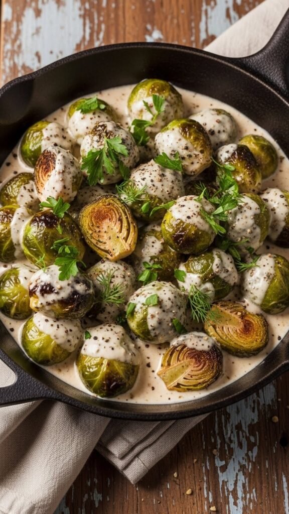 Creamy Garlic Brussels Sprouts