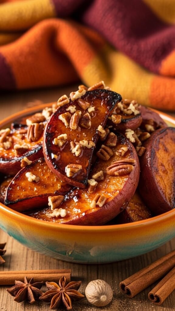 - Toss sweet potatoes with olive oil, maple syrup, cinnamon, and salt. Arrange on a baking sheet.
