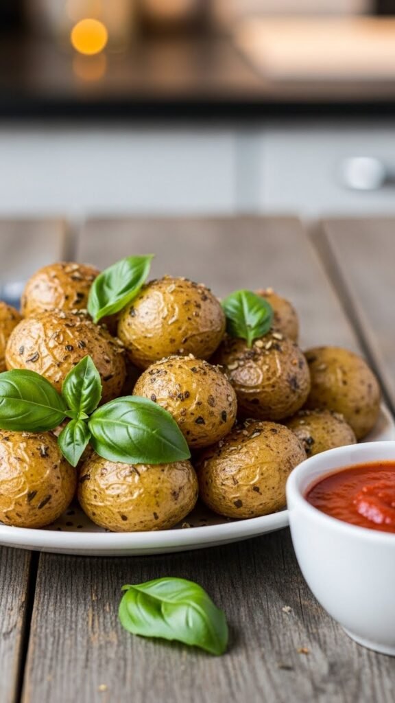 - Combine potatoes with olive oil, Italian seasoning, salt, and pepper. Spread on a baking sheet.