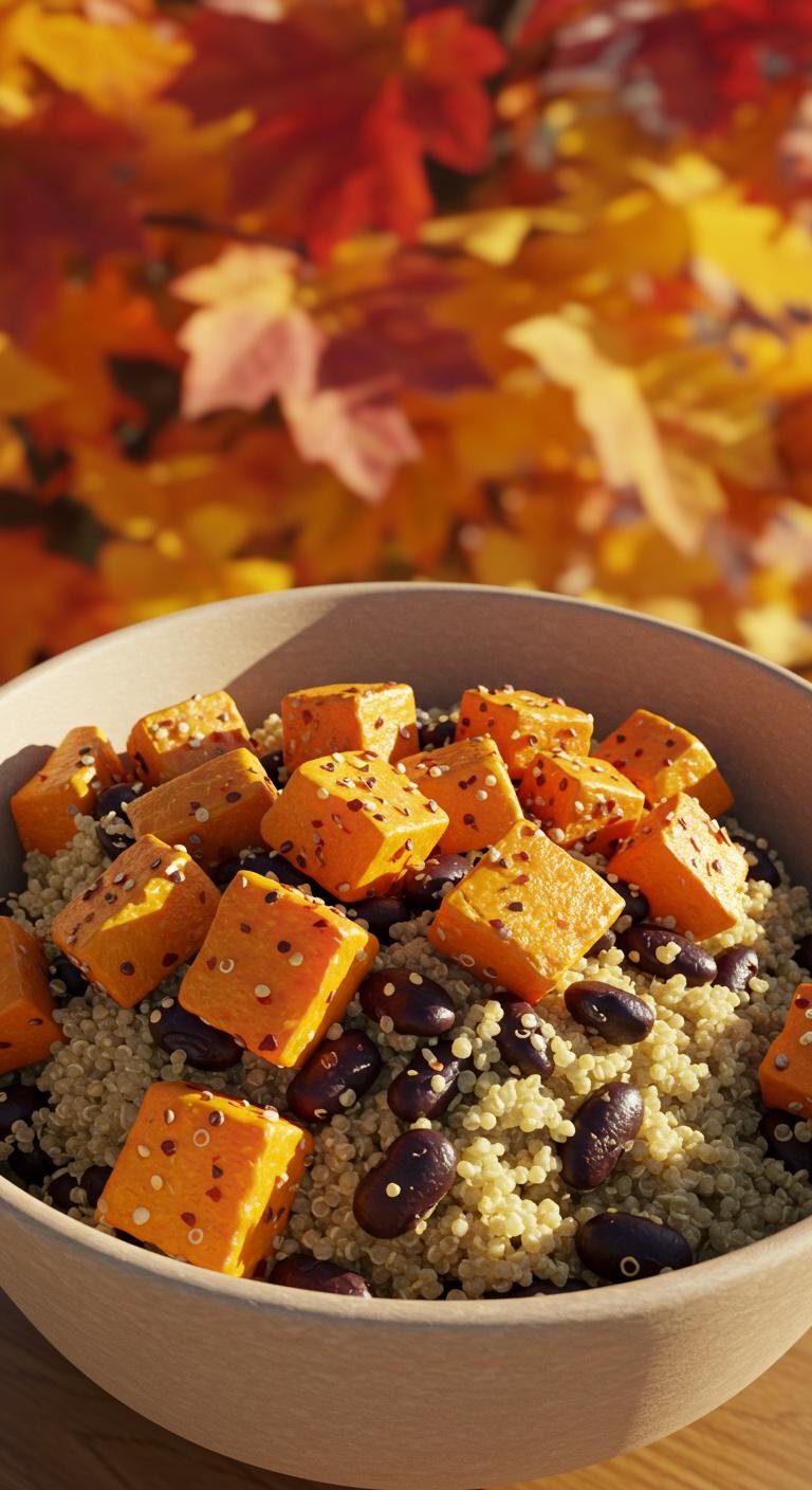 - Mix quinoa, black beans, and roasted pumpkin in a bowl; drizzle with lime juice.