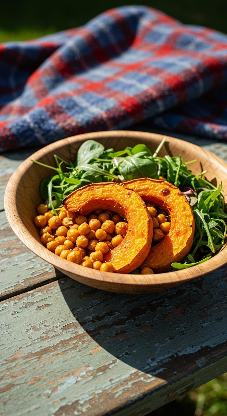 - Preheat oven to 400°F (200°C). Toss pumpkin and chickpeas with olive oil, cumin, salt, and pepper; roast for 30 minutes.