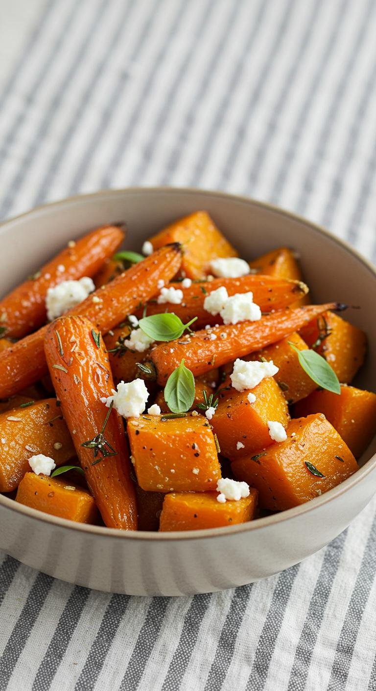 - Preheat oven to 400°F (200°C). Toss pumpkin and carrots in olive oil, salt, and pepper; roast for 30 minutes.