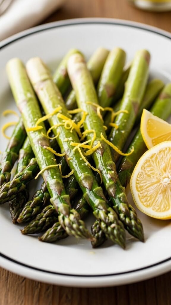 - Mix asparagus with olive oil, garlic, and lemon zest.