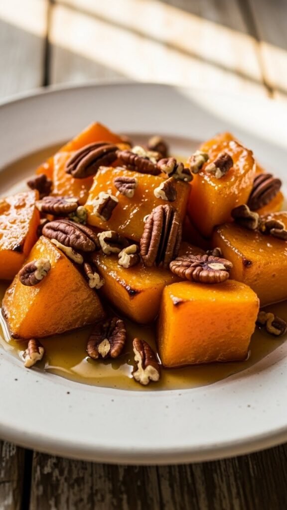 - Toss butternut squash with maple syrup, olive oil, and salt.