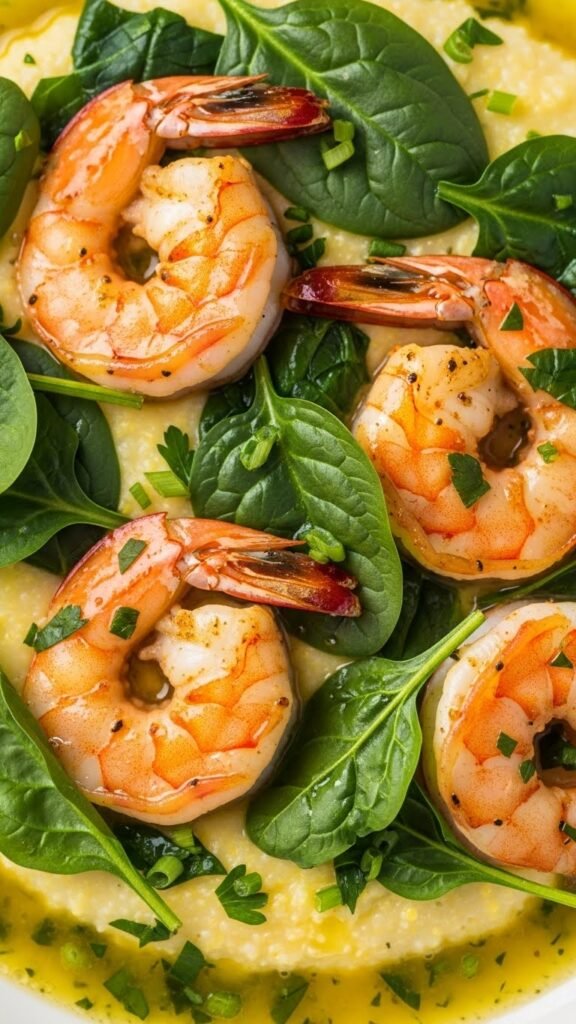 4. Shrimp and Grits with Spinach