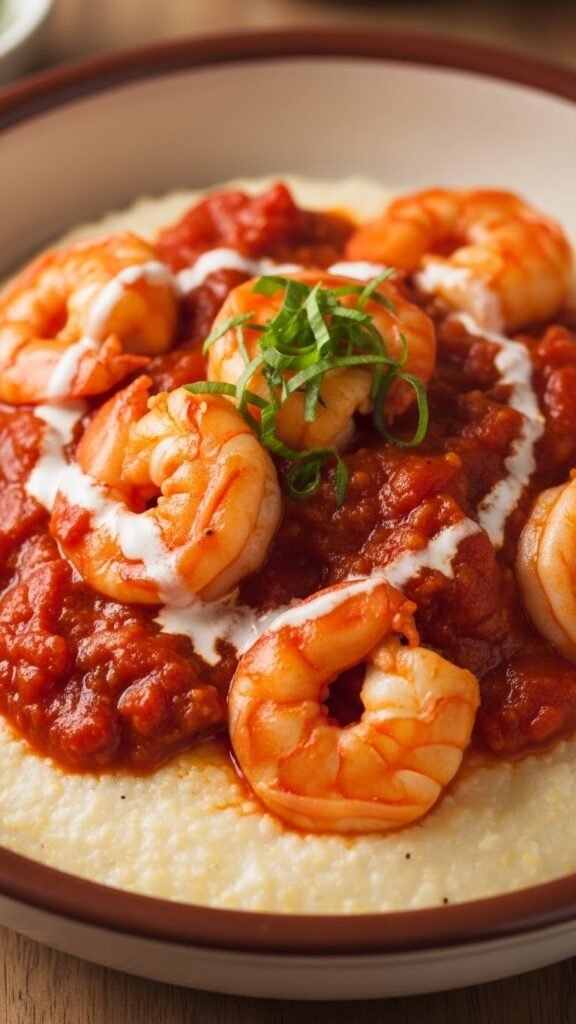 5. Shrimp and Grits with Tomato Cream Sauce