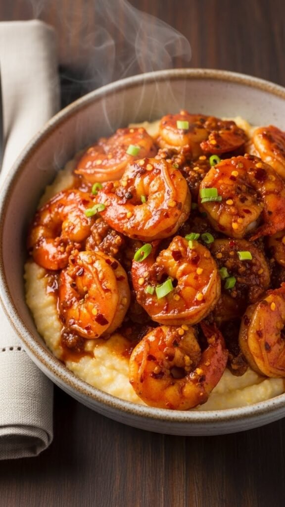 - Cook until shrimp are done, then serve over grits.