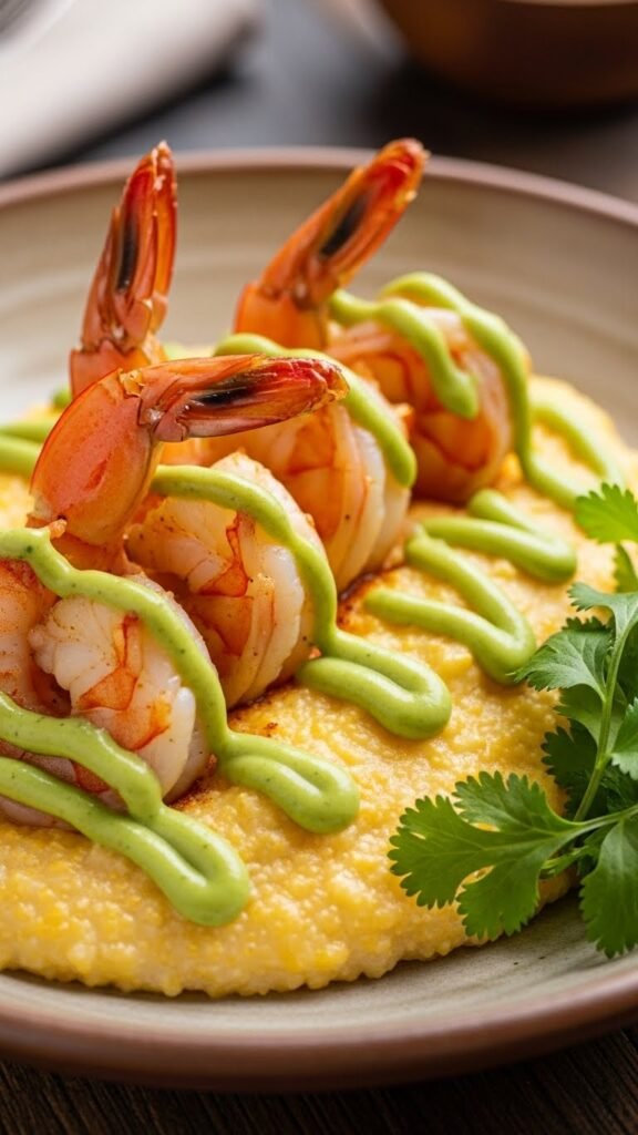 10. Shrimp and Grits with Creamy Avocado Sauce