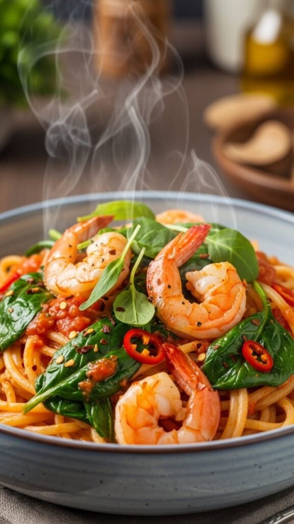 Spicy Shrimp and Spinach Pasta with Creamy Tomato Sauce