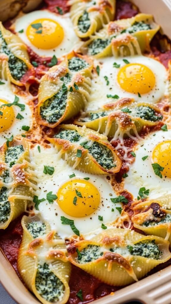 Spinach and Ricotta Shells with Marinara and Eggs