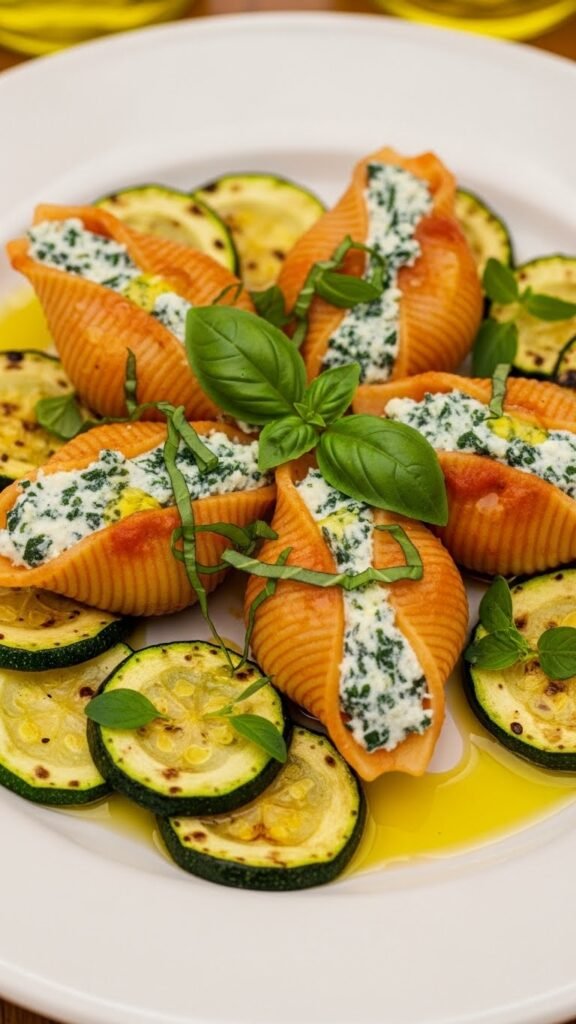 Spinach and Ricotta Stuffed Shells with Zucchini