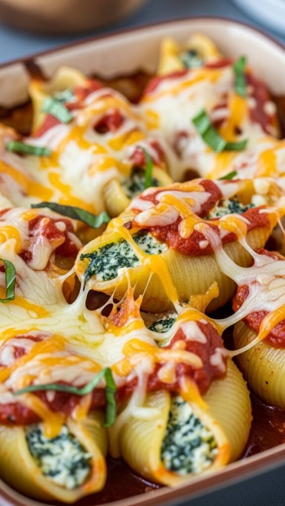 Spinach and Ricotta Stuffed Shells with Mixed Cheese