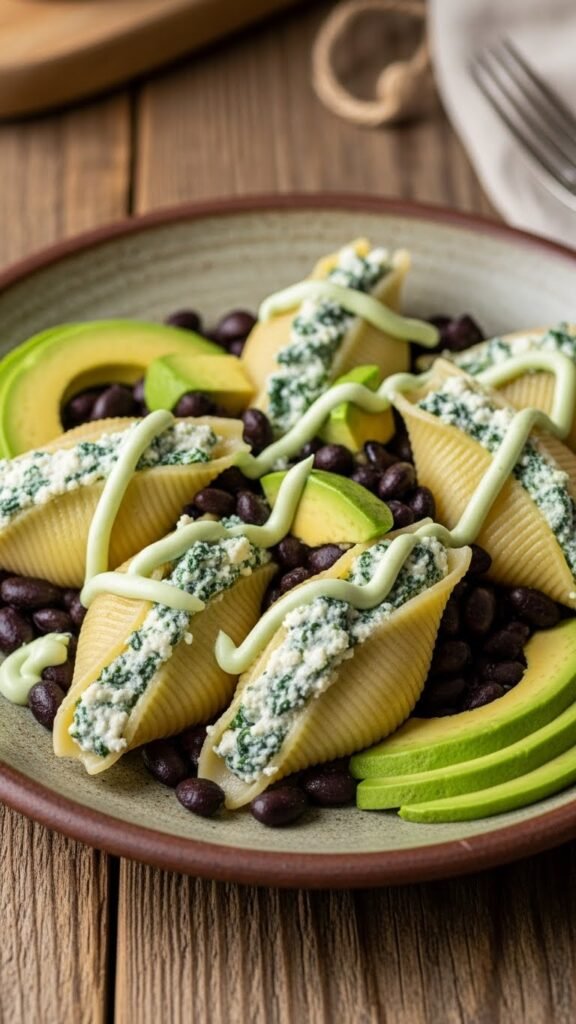 Spinach and Ricotta Stuffed Shells with Black Beans